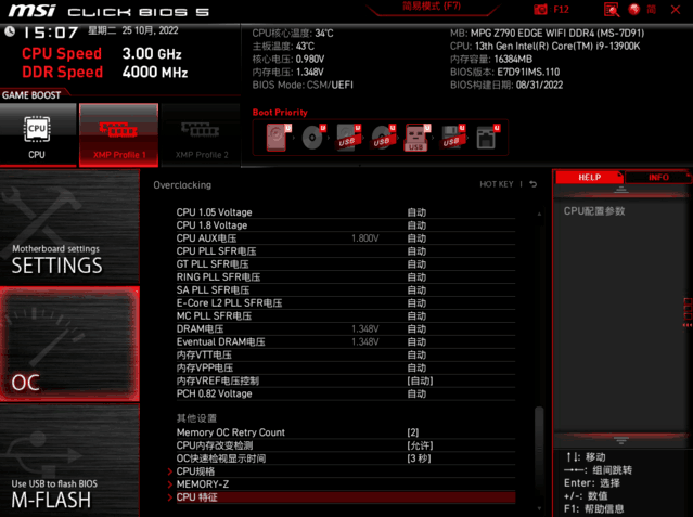 以下是OC超频界面,可以调节CPU、内存频率、电压等详细参数,专为硬件爱好者准备。