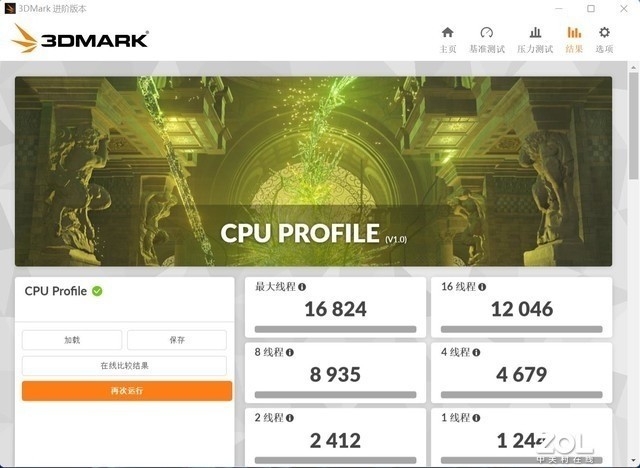 以下是3DMark新测试CPUProfile的测试,这是一个专门测试处理器多线程在游戏中的表现。