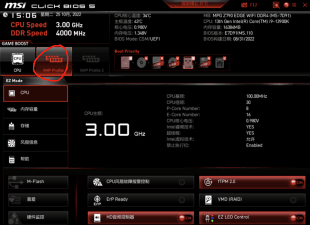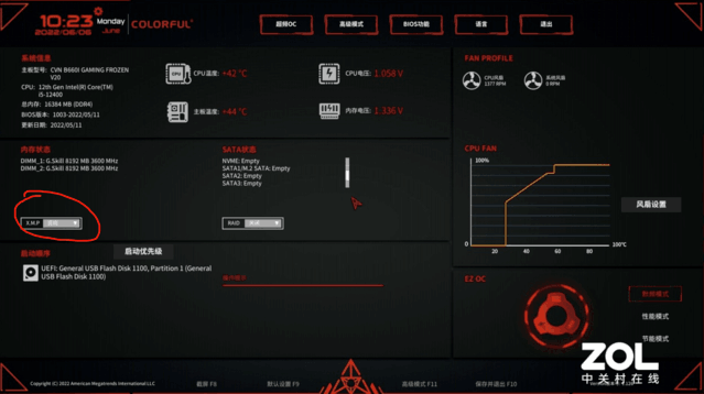 打开需要在BIOS中操作,进入主板BIOS界面,一般打开后按F2或DEL进入,找到相应的XMP选项按钮即可打开,每个主板的BIOS界面都不一样,但实际上都差不多,都支持中文图形界面调整。