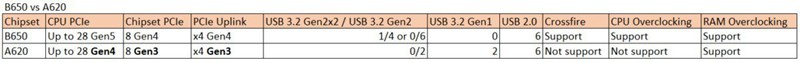 AMDB650和A620芯片组规格,来源chi11eddog。