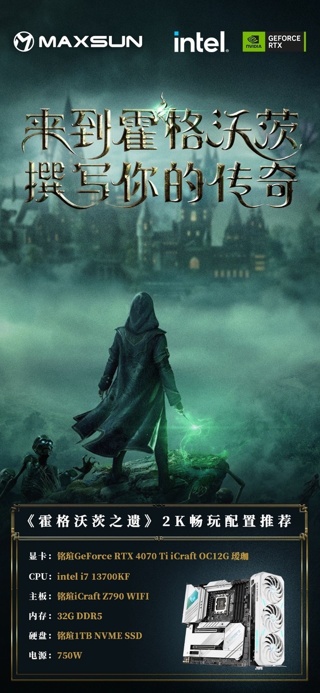 对想要玩霍格沃茨之遗的小伙伴们要注意了,游戏对配置的要求比较高。因此,今天就为大家推荐一套基于铭瑄 Z790 WIFI主板和GeForceRTX4070TiCraftOC12GG伽,可以在2K分辨率上玩得很开心。