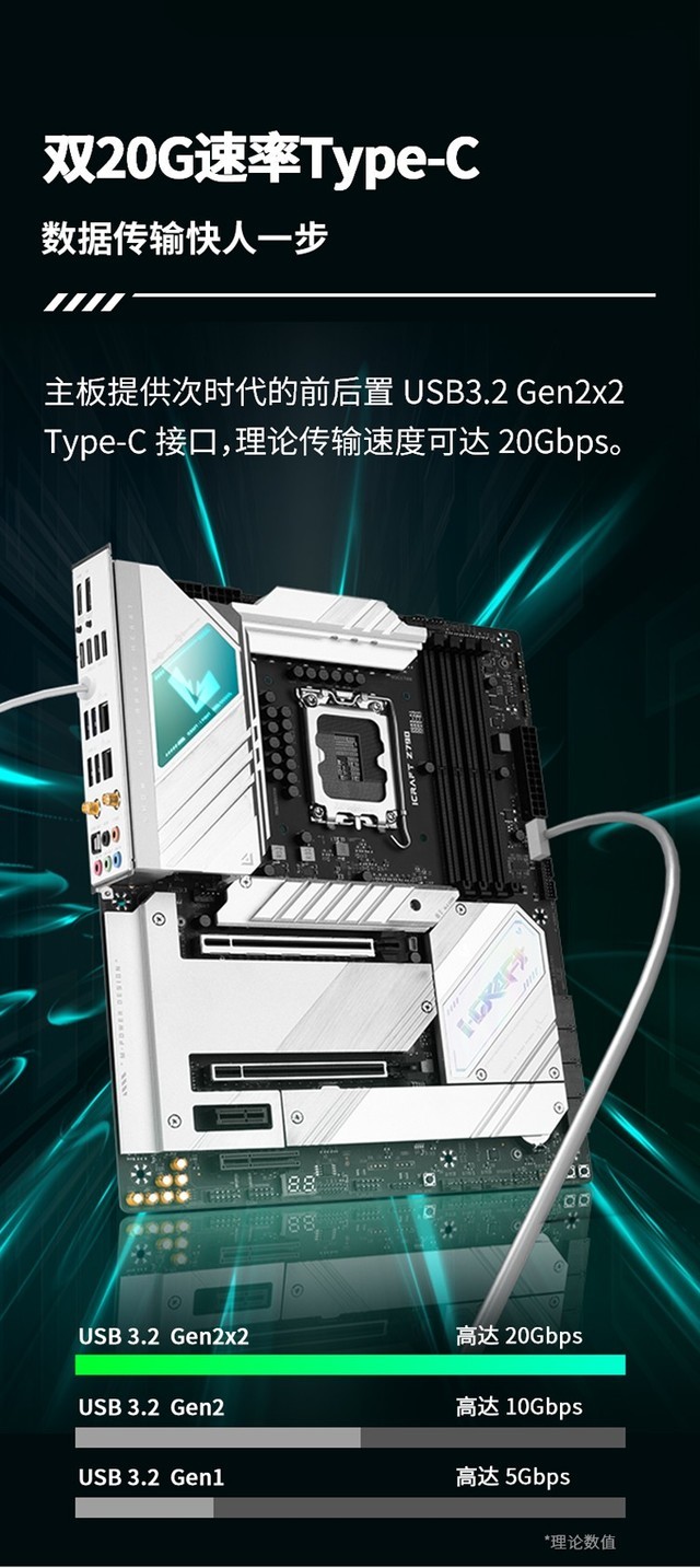 Type-C接口前置+后置20G速度,让玩家在数据传输方面更上一层楼。