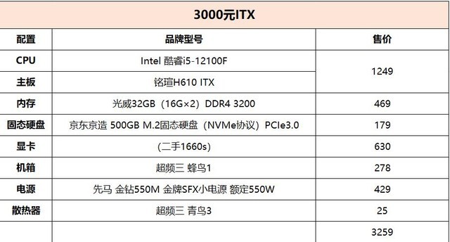 3000元内还要12代处理器的ITX整机太难了,除非一套都是二手,下面我们分开来说说。