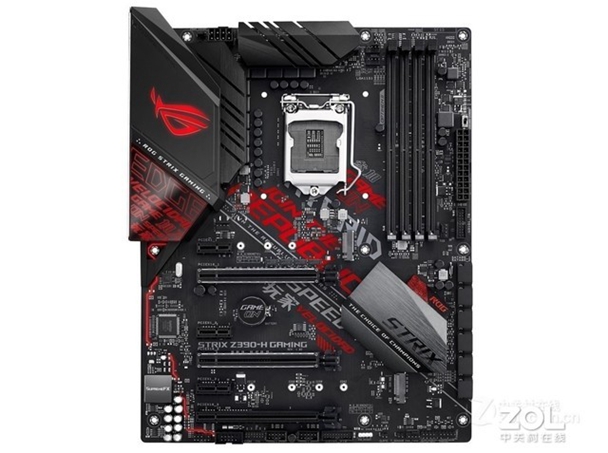 华硕 Z390-H GAMING电竞主板采用的是ATX板型,主板主体黑红相间,营造出了一种电竞氛围。而相应的电竞Logo并不单单覆盖在PCB板及I/O挡板上,以及CPU针脚保护盖上,就连背板部分也印制了Logo。