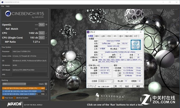 在使用六核心12线程的8700K测试后,这款主板的CPU在CineBench的R15的单线程得分193,多线程得分1402,发挥相当的稳定。