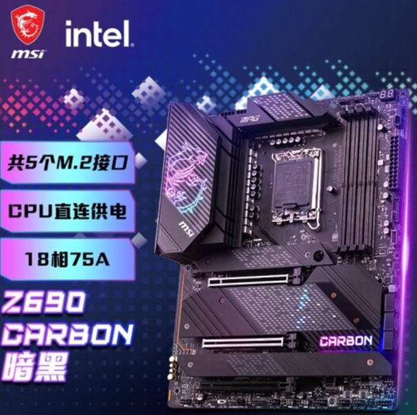 这款主板同时采用了18相CPU供电,单相电流可达75A,能满足12代旗舰酷睿处理器的供电需求。微星 Z690 CARBON WIFI主板板载5个M.2接口,同样保证用户的拓展需求。