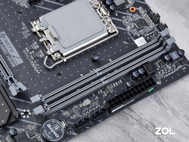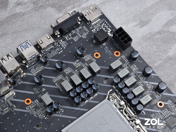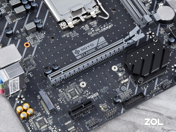 梅捷 H610M采用M-ATX板型,本身是面向入门平台,除了南桥芯片组其他部位没有装甲散热设计,不过原件用料做工非常规整。