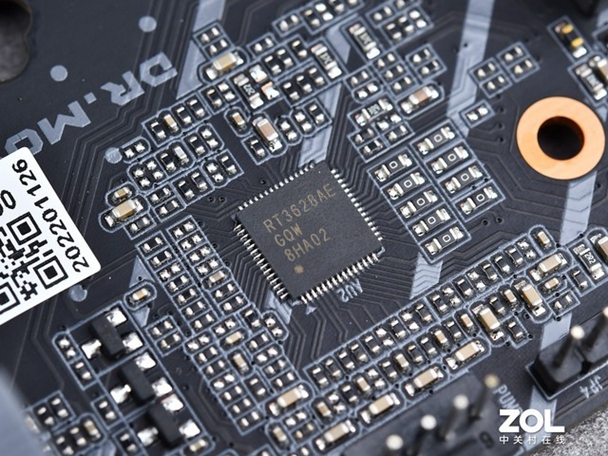 梅捷 H610M主板贡供电系统十分出色,采用了8+1相供电设计,PWM主控为RT3628AE,DR.MOS设计,型号使用与华硕 B660M同款的SiC 654,单相电流输出50A,在前几年入门主板中可见不到这种级别的供电水平,还拥有单独1相VCC_AUX供电这是12代平台的全新供电体系,结合了上代VCCSA 和 VCCIO 供电。