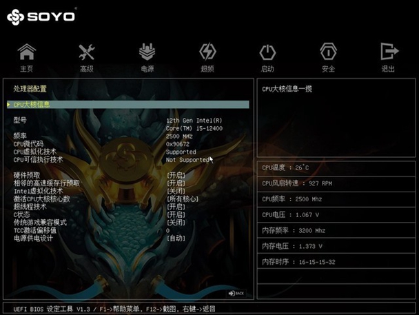 高级界面能调整处理器等相关设置,12代酷睿大小核都能在这里进行调校。