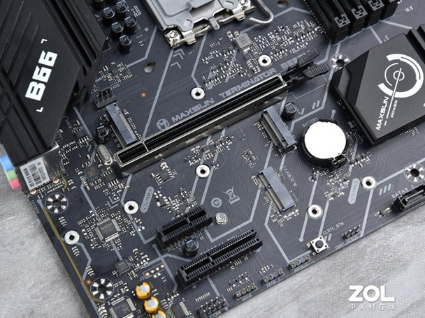 铭瑄 B660M主板PCIe插槽周围一共提供更多3个M.2插槽和一个M.2 WIFI插槽,其中2个M.2插槽为PCIe 4.0协定,一个为PCIe 3.0协定,而M.2 WIFI插槽则为CNVi协定,买无线网卡的用户需要注意兼容问题。