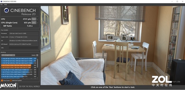 酷睿i5-12400现阶段CINEBENCH R20指令和数据得分为655,在此款应用软件中战绩比11代酷睿i9都强,多处理器达至4741,同样发挥出众。