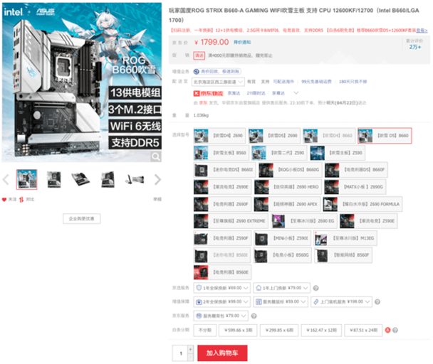 华硕 B660吹雪主板――时尚之选售价1799元