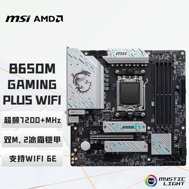 微星 B650M GAMING PLUS WIFI主板 支持CPU 7800X3D/9700X/9600X/7500F (AMD B650/AM5接口)