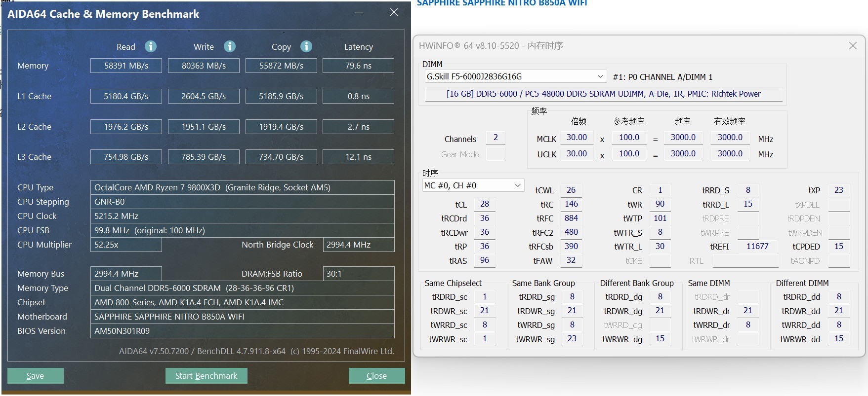 蓝宝石前段时间发布了一款性价比极高的主板:NITRO 氮动 B850A WIFI 主板。蓝宝石 B850A WIFI主板的售价只要1349元,相比普遍1500元以上的B850主板,确实极具竞争力。虽然价格实惠,蓝宝石 B850A WIFI 主板的用料规格依然相当出色。在供电方面,它足够支持AMD旗舰游戏处理器锐龙9 9950X3D释放出全部性能,还能让内存超频至8000MT/s。我们前段时间评测过蓝宝石 B850A WIFI,今天主要来体验一下其BIOS中的内存小参调节功能。