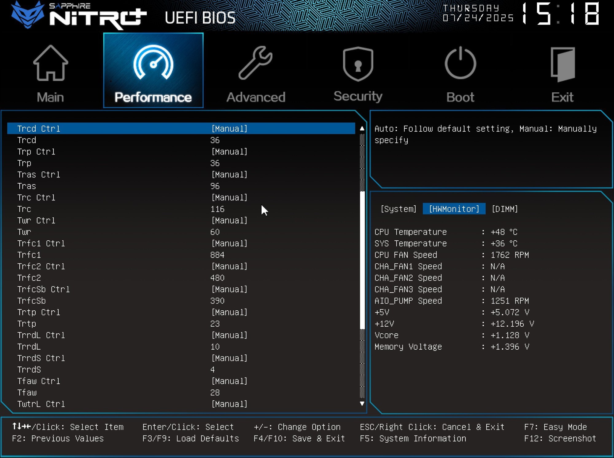 目前蓝宝石在主板BIOS上下了功夫,笔者也注意到蓝宝石主板增加了对于这些小参数的调节选项。我们进入BIOS,按F7,找到高级内存设置选项,往下拉就可以看到蓝宝石 B850A WIFI主板的内存参数设置界面,小参数就位于时序大参数设置区域的下方。