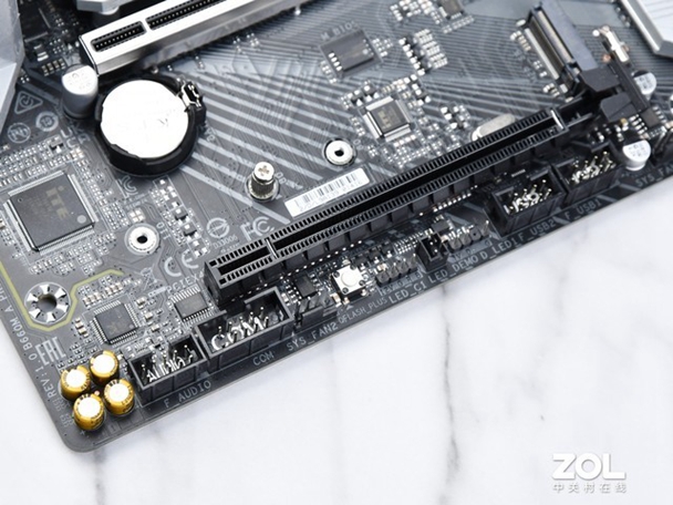 因为供电模组比较出色,技嘉也使用了8+4pin供电接口,插座还使用了实心针脚,耐用性以及耐压能力更强。