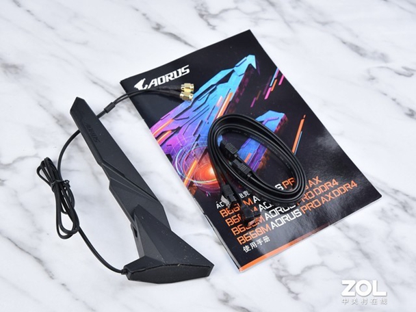 技嘉 B660M主板配件也准备了WIFI 6增强天线,用于I/O区域的天线接口,信号不好的地方效果显著。
