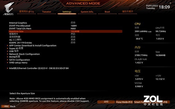 技嘉 B660M主板延续了技嘉这两年愈发完善的中文图形化BIOS设计,功能齐全,调校便捷。