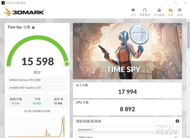 下面测试一下3D MARK,涉及的项目有基于DX11环境的Fire Strike和基于DX12环境的Time Spy。