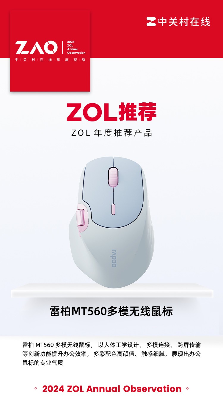 2024 ZOL年度推荐产品:雷柏 MT560多模无线鼠标