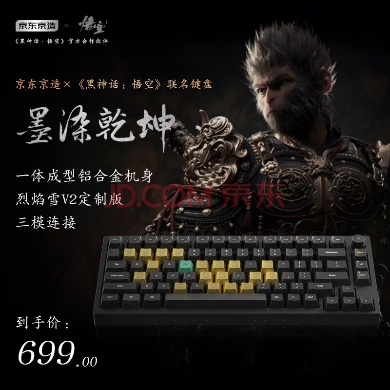今日,京东京造携手“黑神话”IP,正式推出《黑神话:悟空》联名键盘――《墨染乾坤》。此款键盘为“黑神话”IP在键盘领域的独家合作成果,其外观设计更是由游戏科学主创团队全程参与,独具匠心。