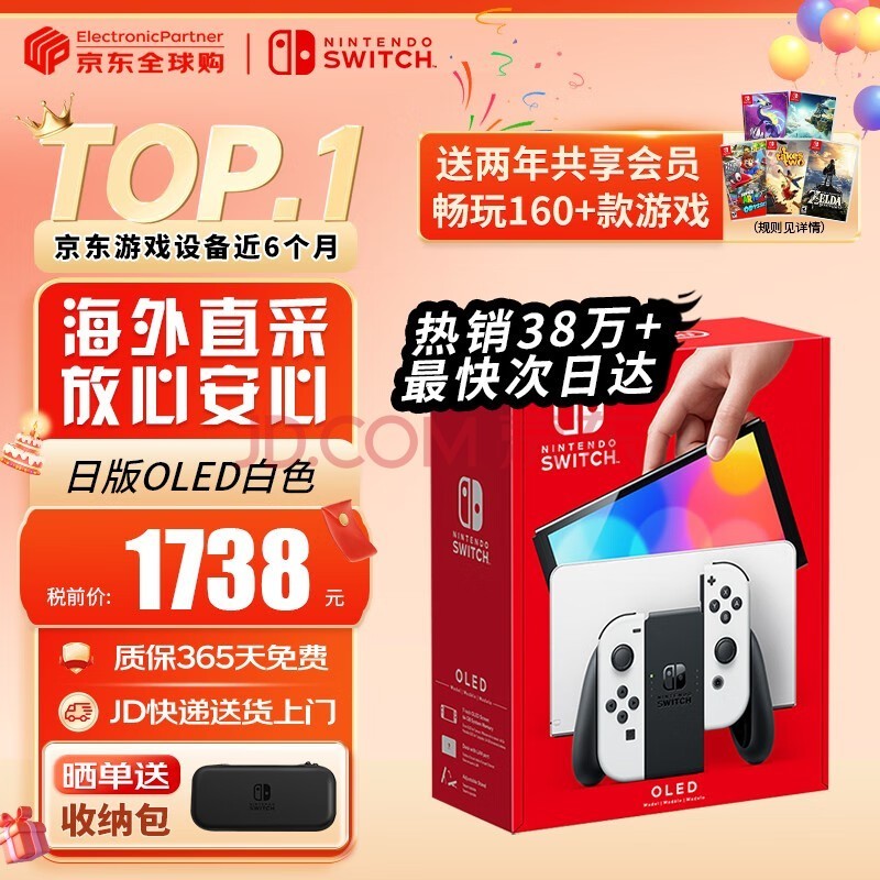 任天堂【国内保税仓】Switch OLED/续航加强日版/港版便携家用ns体感游戏掌机 日版OLED白色64GB(赠共享会员)