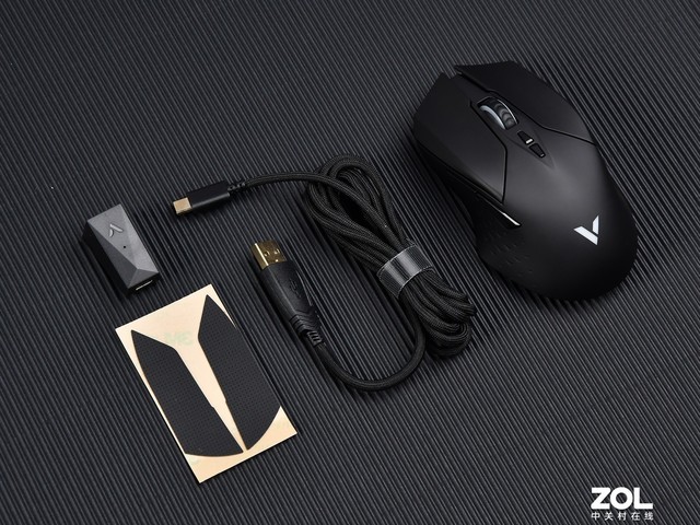 我们可以在盒中找到180cm伞绳线材与接收器转换器,线材有着超级柔软的特性,而桌面接收器也可以提升鼠标无线连接的稳定度,不论是有线还是无线连接的操作感均可得到保证。