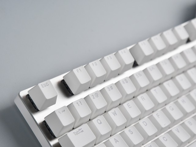 键盘使用了双色注塑工艺的PBT键帽,并且做到透光。它的字符为闭口工艺,且没有找到明显的毛刺,整体看上去还是比较有质感的。PBT材质也具有不易打油,手感干爽的特性,比起ABS键帽来说,要更加耐用,后期保养也相对简单一些,喜欢的用户可以赶快购买了。