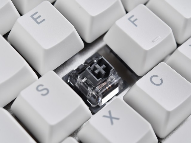 另外,与新品键盘同时间段内上线的还有雷柏KA-12线性弹白轴。这款轴体拥有35gf触发压力、3.4mm的总行程与1.2mm的触发行程,仍然是一触到底的线性轴体。它的手感比线性快银轴更轻,触发更快,因此在玩游戏方面的体验也是另一个风格。它的轴心采用了POM材质,手感润滑,耐用度高,并且具有防尘设计也,可以避免灰尘和烟灰等粉尘的入侵,配合透明轴盖,不论是灯效表现,还是手感稳定度方面都能够得到保证。