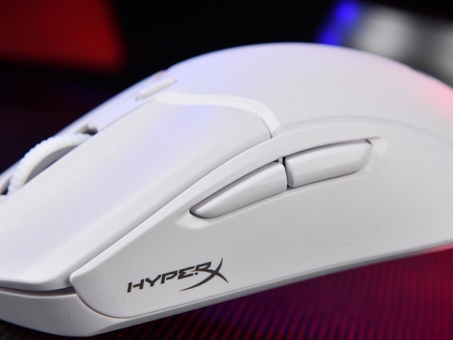 HyperX 旋火2侧键部分,它的两枚侧键位置合理,且依旧不存在空键程,手感一致度高,触底没有绵软的问题,并且不容易误触。这两款鼠标的外壳采用磨砂质感,不易打油。如果使用附件中的防滑贴,还能进一步增强鼠标的摩擦力,即使在有手汗的情况下也不易打滑,适合激烈的游戏战斗。上壳采用一体式不打孔的设计后,我们也就无须担心灰尘进入,或者是留存污渍的问题了,总体来说体验是正提升。