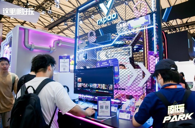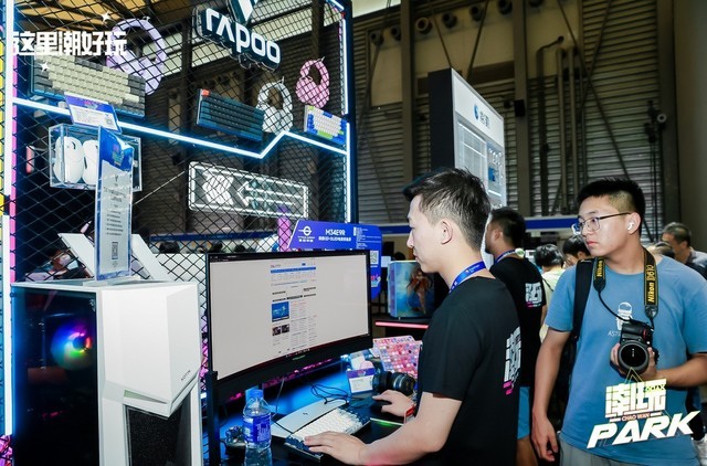 雷柏展台虽然规模不大,但是高能电竞主机、34寸超大屏电竞显示器和各种游戏外设装备一应俱全,展示了现代电竞游戏娱乐的正确打开方式,吸引了大量观众在此驻足打卡。