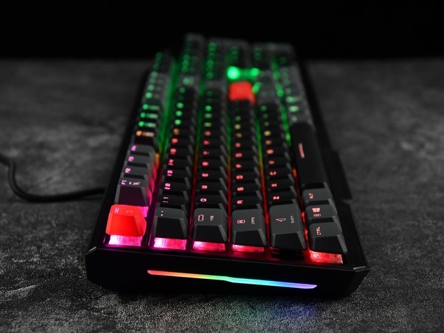 灯光方面,微星VIGOR GK41系列键盘支持RGB背光。其中微星VIGOR GK41(上)的RGB背光为6种固定LED灯光,分布在10个不同区域;微星VIGOR GK41 DUSK(下)则支持单键RGB,支持Mystic Light,并且两侧有RGB灯条。这一点在开篇已经提到过了。