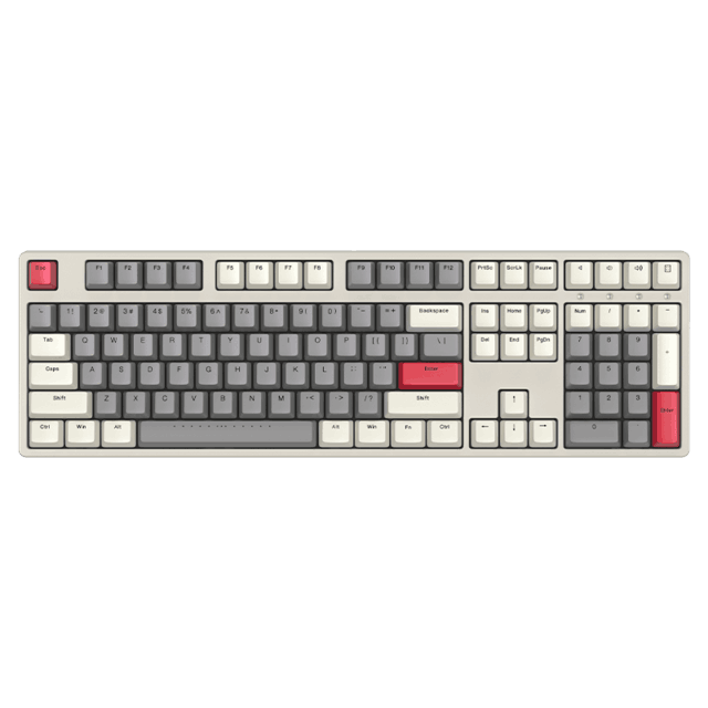 首先是ikbc C108和C104无线办公键盘分别采用Cherry红轴,触感极佳,反应速度快。设计简洁大方,即使长期使用也能减轻手部压力。同时,这两款键盘都配备了高质量的PBT键帽,保证了长期稳定的使用和耐用性。