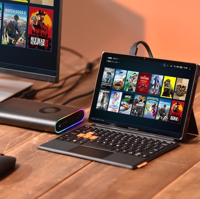 通过丰富的接口配置,OneXGPU不仅是一个显卡,也是一个强大的扩展工具。Oculink接口和USBB-C 4.0接口可以连接游戏手持设备、笔记本电脑、台式电脑等PC设备,提高设备的显示性能;2个 HDMI2.1 接口和 2 个 DP 支持4K/8K输出的界面,您可以轻松连接4个显示器,扩大屏幕空间,适合多任务工作,或边看直播边享受游戏。
