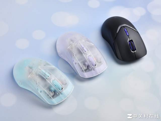 雷柏 VT9PRO双高速双模无线游戏鼠标准备了三种配色方案供用户选择:极光、星霜和暮光之城。极光和星霜的设计风格与VT9Air基本相同,采用半透膜磨砂外壳,而暮光之城则采用黑色+紫色按钮配色风格。