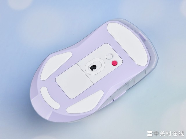 底部周围使用防滑脚垫,配件盒还提供额外的可更换脚垫。红色按钮是上述底部DIY按钮,默认为回报率切换,旁边是无线机械开关。