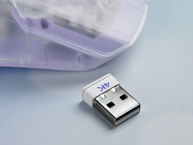 雷柏 VT9PRO双高速双模无线游戏鼠标接收器与VT9Air一样,这次雷柏 VT9PRO双高速双模无线游戏鼠标自带微型nano 4K接收器可以在无线模式下享受4K回报,无需额外购买,接收器上提供指示灯,可以提示功率,使用方便。