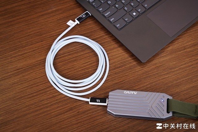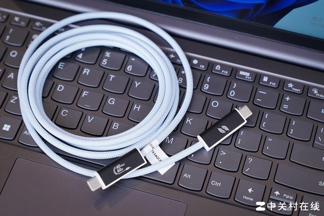 相对于传统的USB4电缆,USB4 AOC电缆的直径更细,因为为了保证信号传输的质量,传统的USB4电缆内部使用了完整的粗径铜缆。此外,为了保证信号质量和传输带宽,传统的USB4电缆长度通常只有0.8米,而这种USB4电缆 AOC电缆最长可支持5米的传输距离,此次评估的样品长度为6英尺,即1.82米。