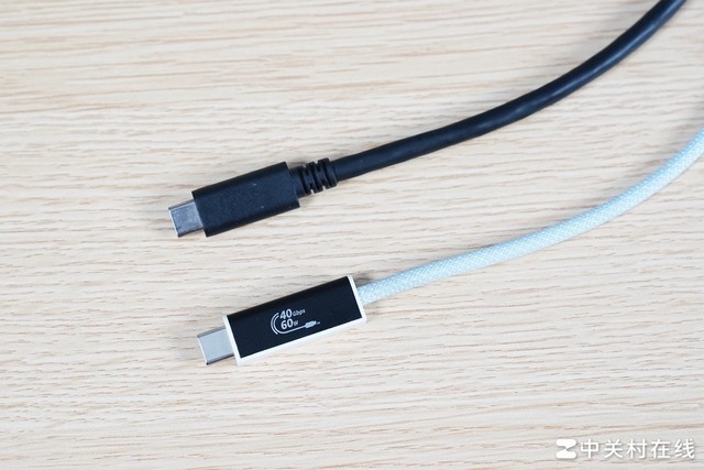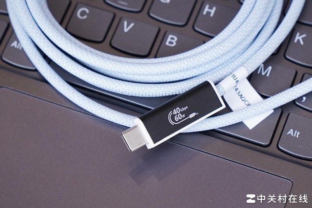USB4 AOC两端均为Type-C接口,插头一侧标有40Gbps带宽和60W快充功率,插头长度相对较长,这就是内部嵌有光电转换电路的原因。