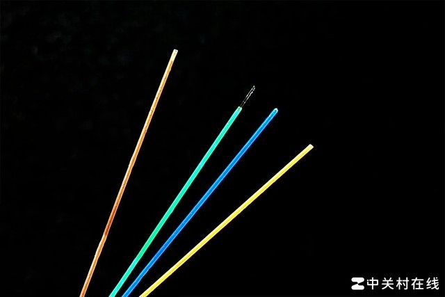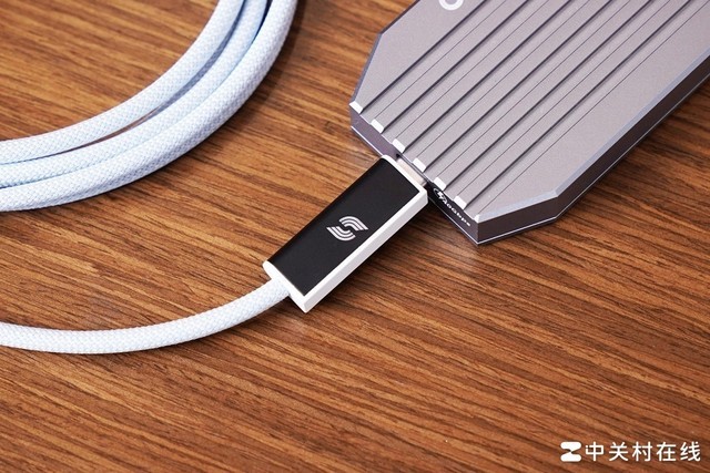 从外观上看,这个USB4 AOC电缆采用浅蓝灰色编织外层,具有良好的抗拉强度。内部配有塑料光纤,使电线非常灵活,可卷绕半径达到10毫米,非常光滑,不会缠绕。这是一种完全不同于传统USB4电线的入门体验。据厂家介绍,还有玻璃纤维可供选择。