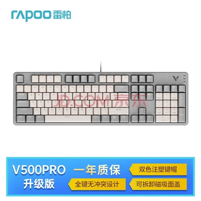 键帽方面,雷柏 V500PRO 2024版有两个版本,其中“双拼”色版本采用的是PBT双色注塑,月光白和曜岩黑则为ABS双色注塑。在乎键帽材质的朋友注意一下。