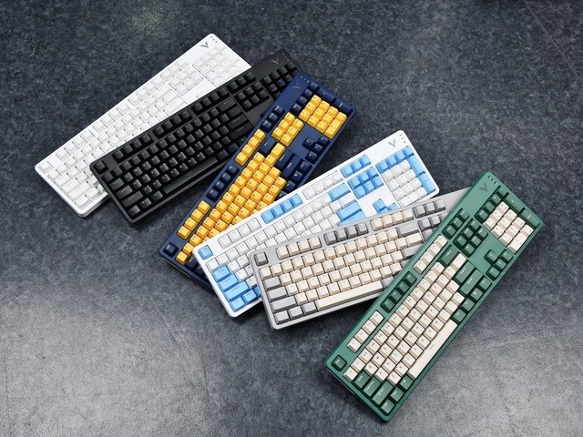 雷柏 V500PRO 2024版采用了全新的104键外观设计,共提供了6种配色方案,我们都得到了。有点遗憾,雷柏 V500PRO2024版提供了五种雷柏独立机械轴。在我们得到的六个键盘中,只有三个,我们没有体验到所有轴的感觉。