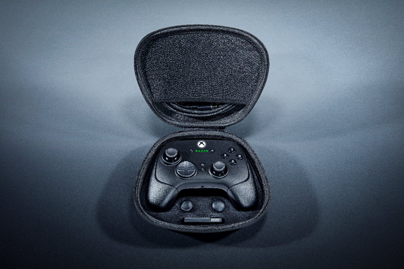 便携性雷蛇幻影战狼V3专业版配备了定制的便携包,内有卡槽可安全收纳所有配件,包括手柄、2个可更换的摇杆帽、无线适配器和一根约3米长连接线,方便玩家随身携带并提供保护。