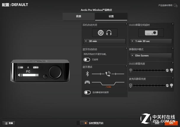 除此之外,它还支持耳机闲置时长自动关闭,以及无线声卡接收器OLED屏幕的空闲时间以及屏幕待机亮度和麦克风静音亮度等等,页面的设计十分简洁,整体操作简单易上手,不存在难度。