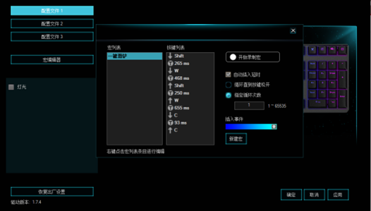 步骤一打开驱动,选中雷柏 V700RGB合金版的宏编辑,点击宏编辑器,再点击右下角的新建宏,命名为一键滑铲。