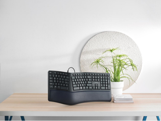 雷柏 NK8800键盘采用分体式设计,模拟指尖弯曲弧度按钮,按键布局也是根据手腕自然下垂的姿势进行的,这样用户就可以减少手指和手腕开始舒适健康的办公之旅。按钮布局下方是一个自然弧度的垫底支架。在17°的黄金放置角度下,手腕始终保持在舒适的位置,手臂自然伸展,配合键盘背设脚架,灵活调整工作角度,使舒适向前迈出一步,长时间代码亲密助手。