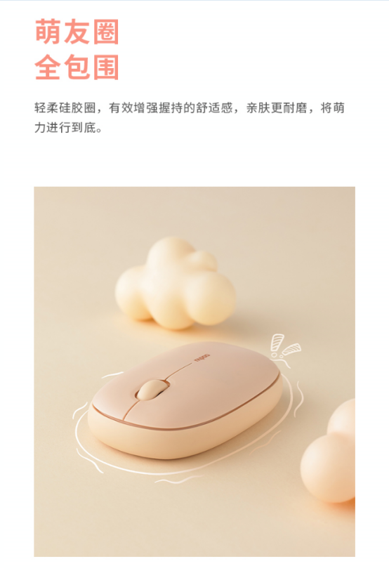 雷柏 M650有轻揉硅胶圈,有效增强握持舒适性,更亲肤,更耐磨,将萌力进行到底。