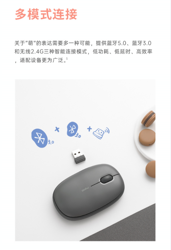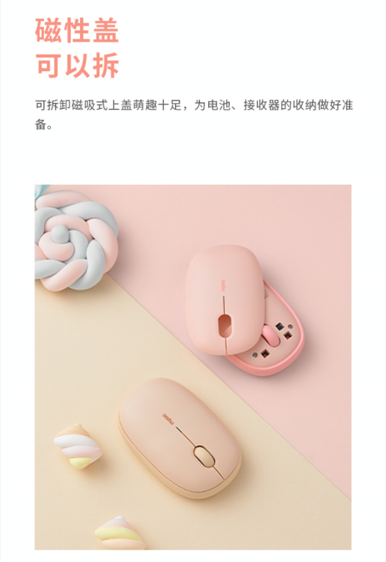 静音微动的加入有效降低了噪音的使用,创造了一个安静的办公环境,适合图书馆和其他环境。可拆卸的磁吸盖除了充满可爱的乐趣外,还为电池和接收器的存储提供了便利。