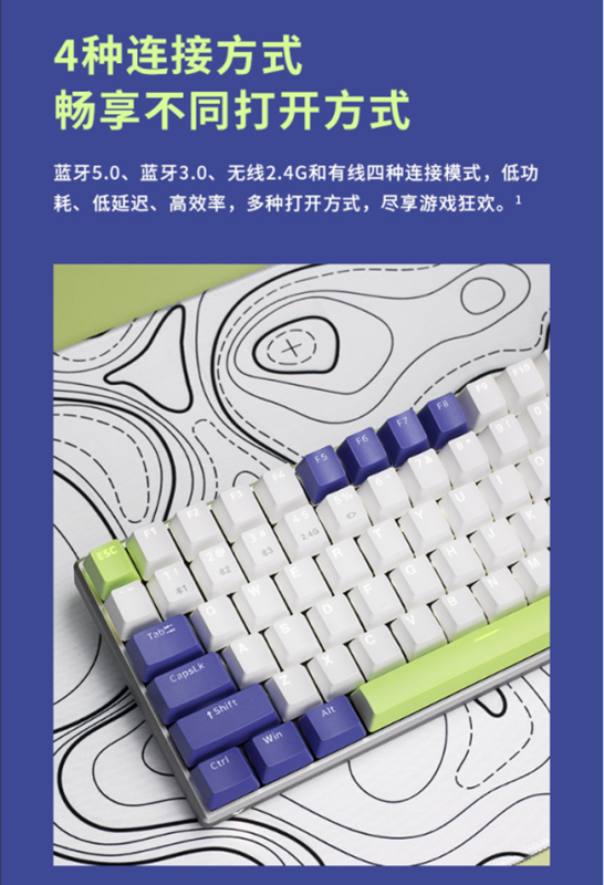 蓝牙5.0、蓝牙3.0、无线2.4G、有线四种连接模式,功耗低、延迟低、效率高,享受游戏狂欢盛宴。此外,笔记本电脑、电脑、手机等5台设备可以同时连接,多台设备可以切换使用。