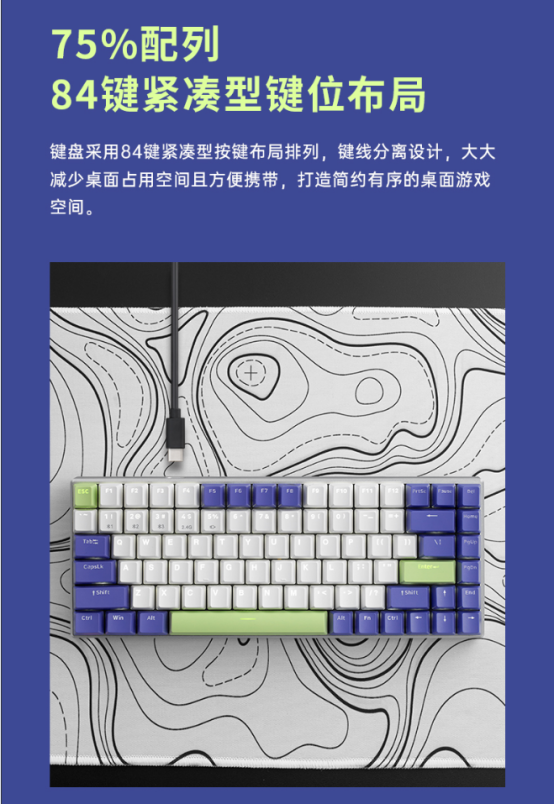 作为雷柏 V700-8A机甲紫的特点之一,84键紧凑的键位布局大大减少了桌面的占用空间,便于携带,打造出简洁有序的桌面游戏空间。